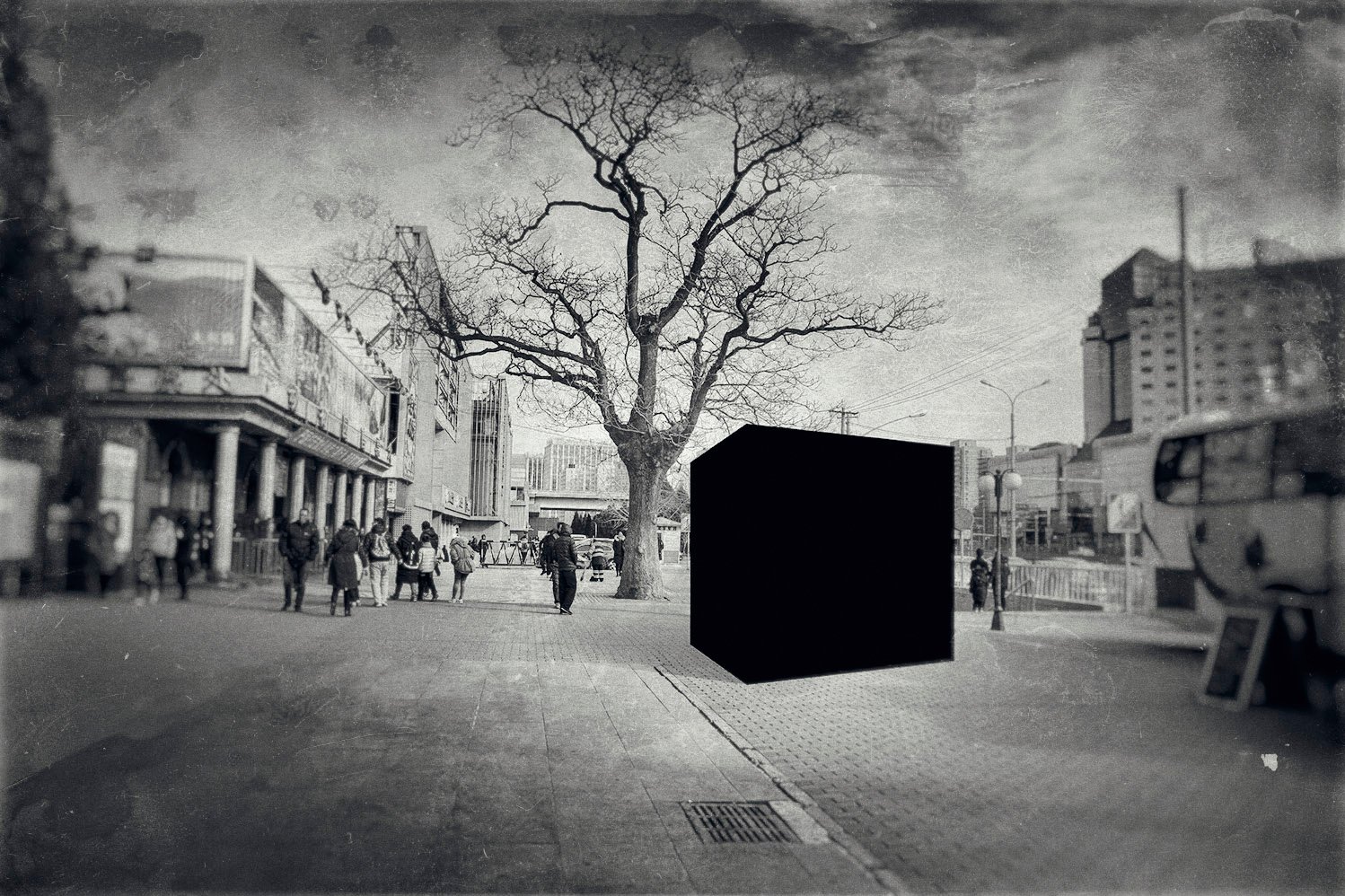 Like dark matter in the cosmos, these black cubes embody the unseen forces that structure our lives. They claim space we cannot consciously perceive, revealing themselves only through the shifts they create around them.